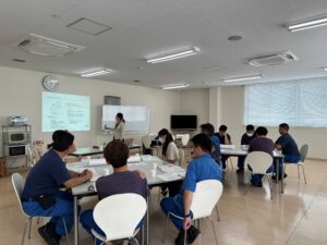 全社員が集まり、茂樹社長のあいさつを聞きました。